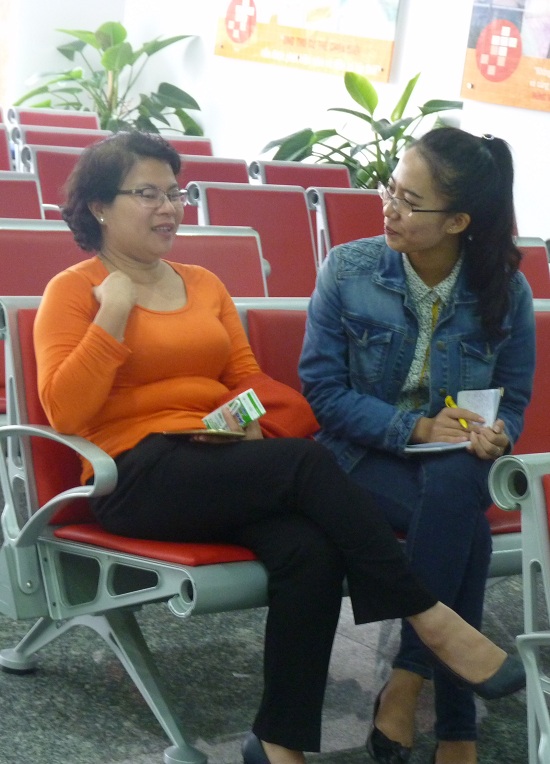 Chị Cao Thu Huyền vui vẻ chuyện trò sau khi hoàn tất việc thăm khám định kỳ